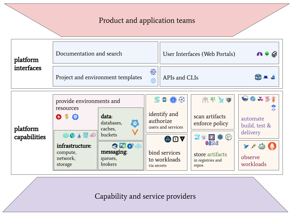 WG Platforms and TAG App Delivery are building on this foundation to provide more guidance and reduce complexity for cloud application builders and CNCF project maintainers. Join us via the links below as we expand guidance on practices like integrating a product mindset in platform teams and applying standard governance policies; and as we pursue conventions for capabilities like secrets management, artifact storage, web portals and API frameworks, all potential parts of a complete platform: